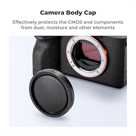 The K&F Concept E Mount Body Cap & Rear Lens Cover is designed to protect your Sony E Mount camera body and lenses from dust, dirt, and scratches. Compatible with popular Sony models from A6700 to A5000, this durable cap set ensures secure protection during storage and transport.